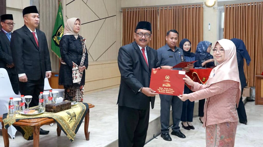 Sebanyak 80 Aparatur Sipil Negara (ASN) di lingkungan Pemerintah Kabupaten Sukabumi menerima penghargaan Satyalancana Karya Satya dari Presiden Republik Indonesia. Penyematan tanda kehormatan dilakukan langsung oleh Bupati Sukabumi, H. Asep Japar, dalam sebuah upacara di Aula Sekretariat Daerah Kabupaten Sukabumi, Jum’at (15/08/2025).
