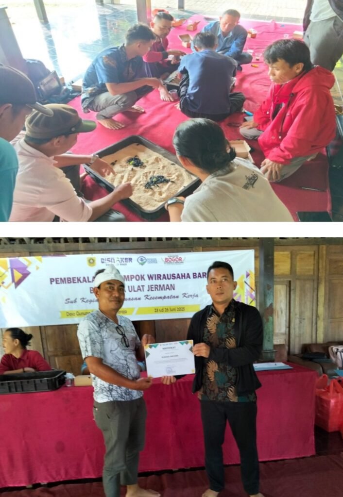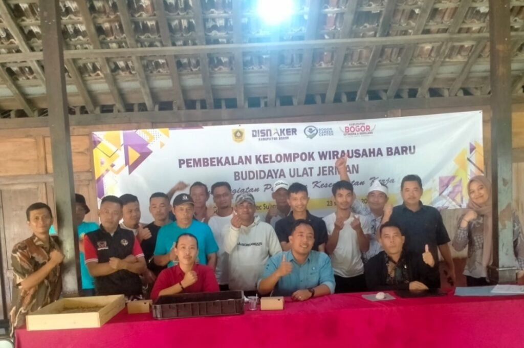 Dalam rangka mewujudkan upaya-upaya tersebut, Dinas Tenaga Kerja Kabupaten Bogor melalui Program Penempatan Tenaga Kerja Kegiatan Pelayanan Antarkerja di Daerah Kab/Kota Sub Kegiatan Perluasan Kesempatan Kerja, melaksanakan Pembekalan Pembentukan Wirausaha Baru Budidaya Ulat Jerman Tahun 2025 pada tanggal 23 s.d 26 Juni 2025 bertempat di Desa Gunung Geulis Kecamatan Sukaraja Kabupaten Bogor, terdiri dari 20 Peserta yang berasal dari Kecamatan Sukaraja dan Panitia Penyelenggara yang dibuka langsung oleh Plt Kepala Dinas Tenaga Kerja Drs. Nana Mulyana, M.Si.