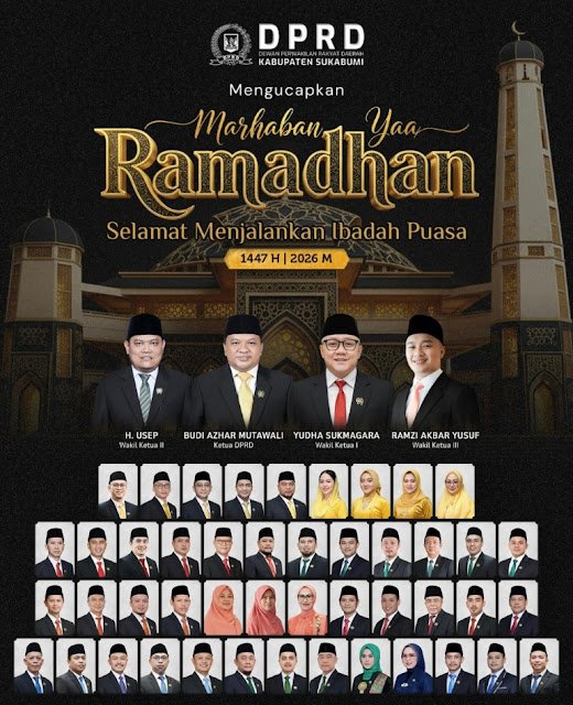 Memasuki bulan suci Ramadan 1447 Hijriyah/2026 Masehi, Dewan Perwakilan Rakyat Daerah Kabupaten Sukabumi (DPRD) Kabupaten Sukabumi menyampaikan ucapan “Marhaban Yaa Ramadhan” kepada seluruh masyarakat Kabupaten Sukabumi, Rabu (18/02/2026).