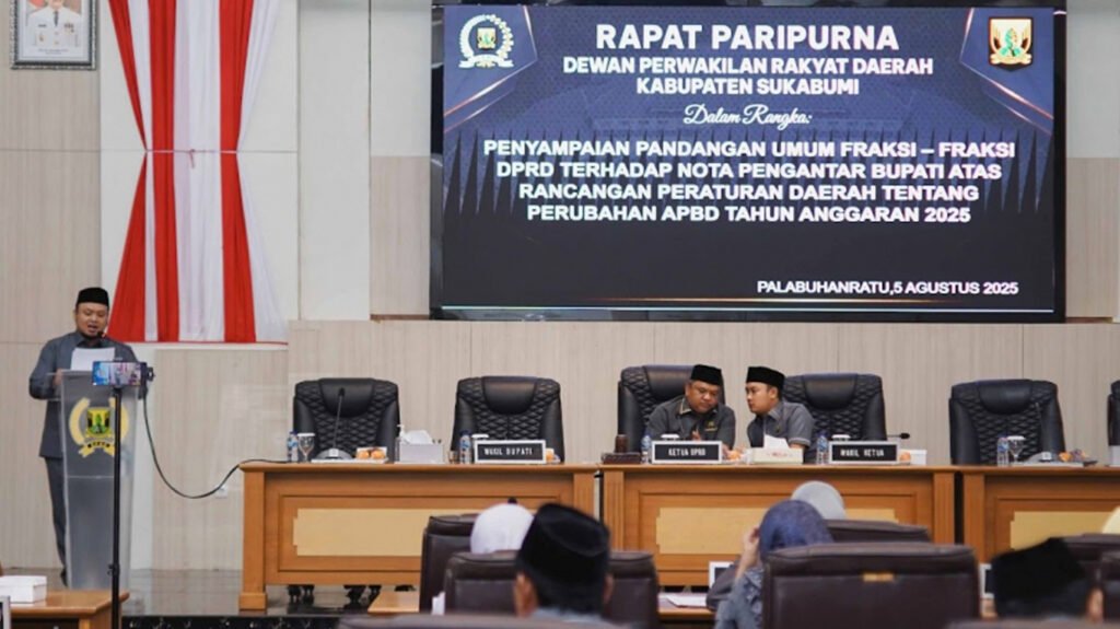 Dewan Perwakilan Rakyat Daerah (DPRD) Kabupaten Sukabumi menyelenggarakan Rapat Paripurna ke-29 Tahun Sidang 2025 dengan agenda utama penyampaian pandangan umum Fraksi-Fraksi DPRD mengenai Rancangan Peraturan Daerah (Raperda) tentang Anggaran Pendapatan dan Belanja Daerah (APBD) Perubahan Tahun Anggaran 2025. Sidang berlangsung di ruang rapat utama DPRD pada Selasa (05/08/2025), dipimpin langsung oleh Ketua DPRD, Budi Azhar Mutawali.