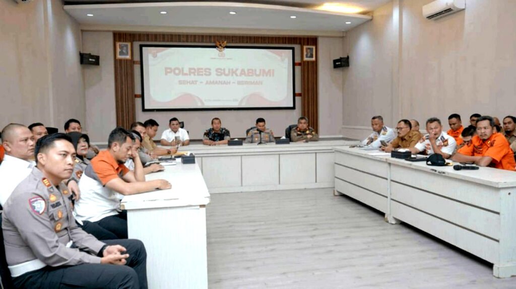 Kepala Dinas Pekerjaan Umum (PU) Kabupaten Sukabumi, Uus Firdaus, bersama jajaran pemerintah daerah dan Polres Sukabumi mengikuti Rapat Koordinasi Lintas Sektoral Bidang Operasional tingkat menteri secara virtual di Aula Mapolres Sukabumi, Senin (02/03/2026).