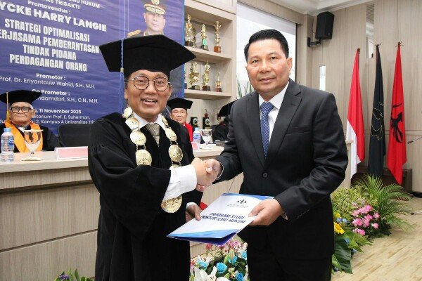Hal itu ia dapatkan usai mengikuti Sidang Terbuka Promosi Doktor yang dilaksanakan di Auditorium Gedung H Lantai 2 Universitas Trisakti, Selasa (11/11/2025), yang dipimpin oleh Ketua Sidang Rektor Universitas Trisakti Prof. Dr. Ir. Kadarsah Suryadi, DEA didampingi Prof. Dr. Eriyantouw Wahid, S.H., M.H. selaku Promotor dan Co-Promotor Endang Pamdandari, S.H., C.N., M.H..
