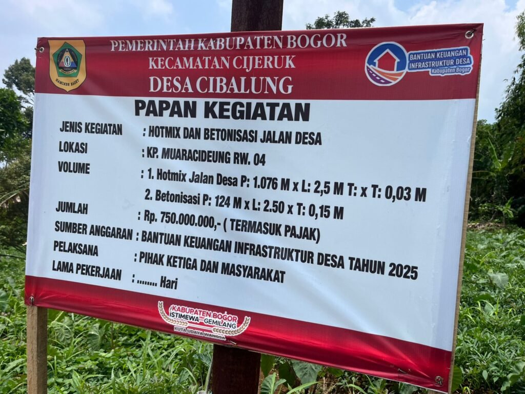 Pemerintah Desa Cibalung Kecamatan Cijeruk Kabupaten Bogor saat ini gencar menggenjot pembangunan infrastruktur lewat Bantuan Keuangan (Bankeu) 1 Milyar yang menjadi andalan Pemerintah Kabupaten Bogor.