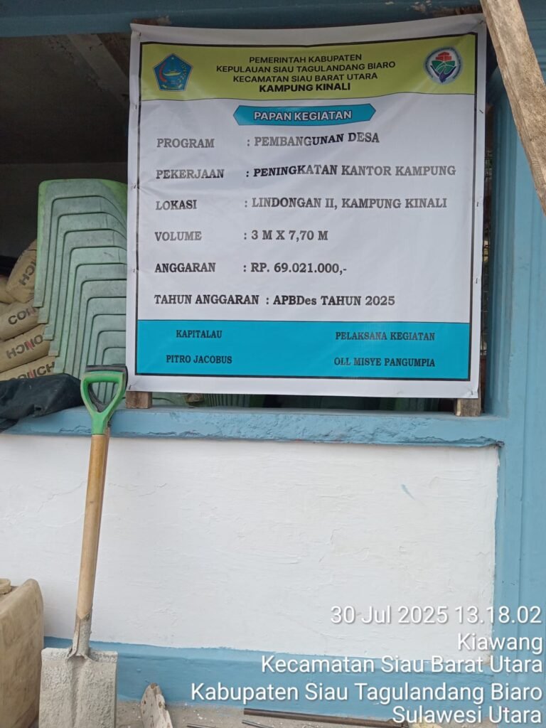 Menurut Kapitalau Kampung Kinali Pitro Jacubus sudah berjalan sesuai tahapan dimana Pembangunan peningkatan kapasitas Kantor Kampung harus selesai tahun depan mengingat kondisi Kantor sudah tidak sesuai dengan kapasitas kerja dan kegiatan kegiatan desa yang semakin padat,” jelasnya.