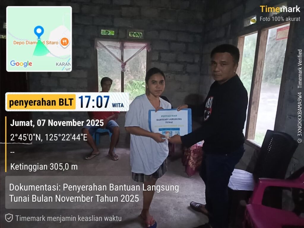 Bertempat di Kantor Balai Kampung Kinali Kecamatan Siau Barat Utara, Jumat 7 November 2025 dilaksanakan kegiatan pembagian Bantuan Langsung Tunai (BLT) dari Dana Desa (DD), tahun Anggaran 2025.