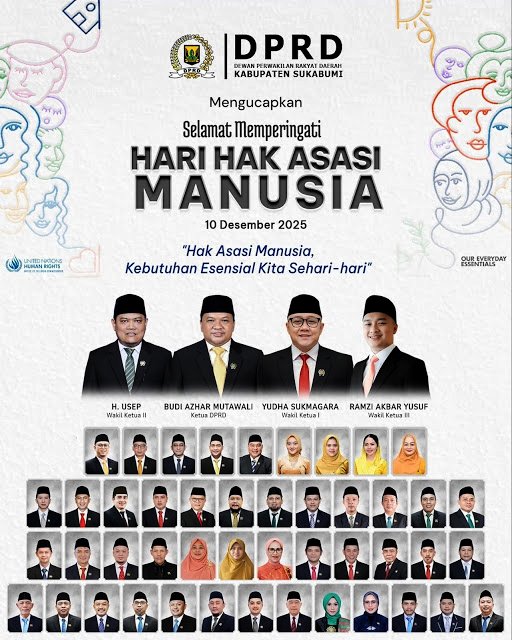 Momentum peringatan Hari Hak Asasi Manusia (HAM) dimanfaatkan DPRD Kabupaten Sukabumi untuk menegaskan pentingnya penghormatan terhadap martabat manusia dalam kehidupan sehari-hari. Peringatan Hari HAM yang jatuh pada Rabu (10/12/2025) ini mengusung tema “Hak Asasi Manusia, Kebutuhan Esensial Kita Sehari-hari”.
