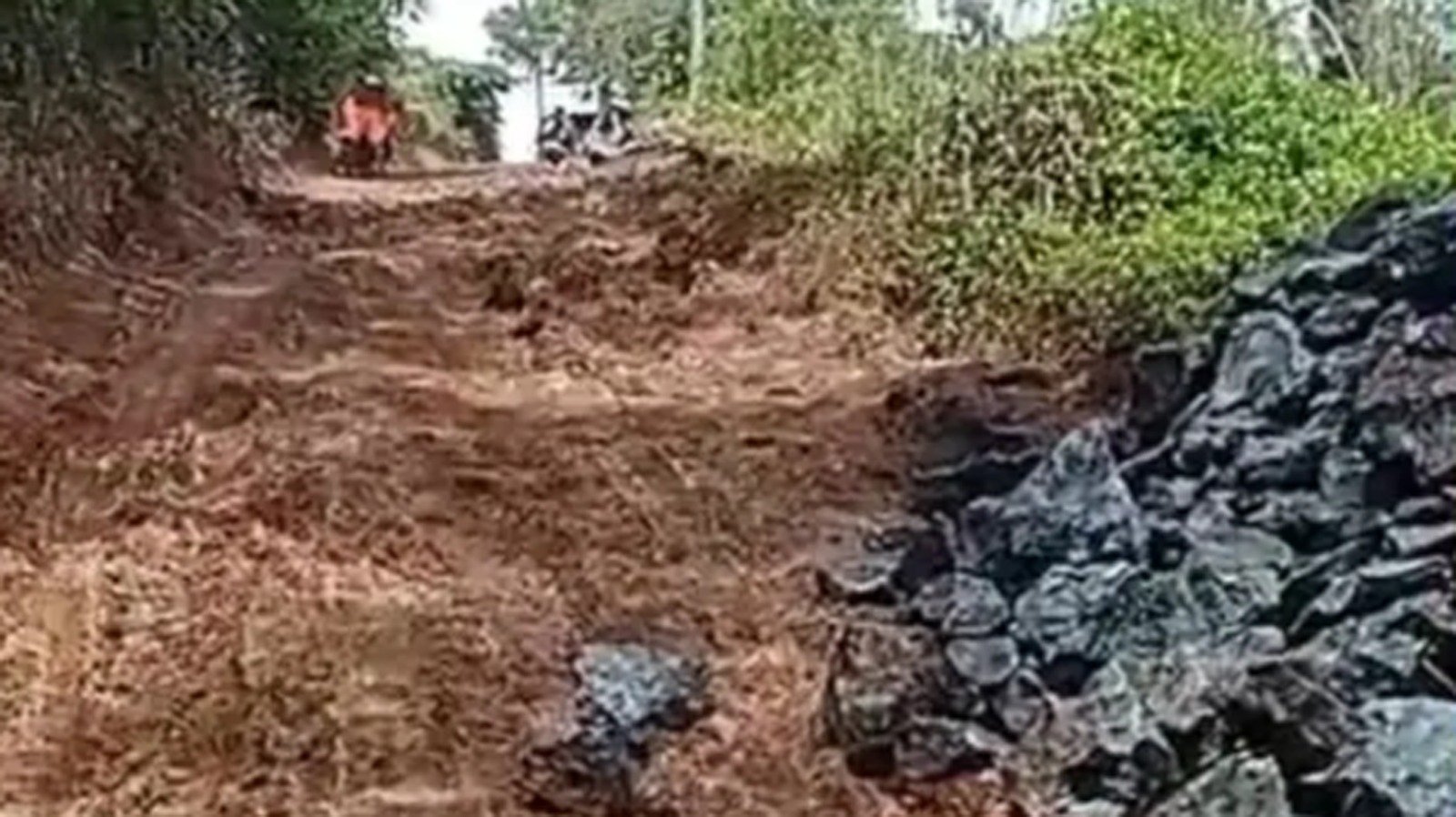 “Kalau hujan, licinnya luar biasa. Banyak warga jatuh. Jalan ini sudah puluhan tahun seperti itu,” katanya.