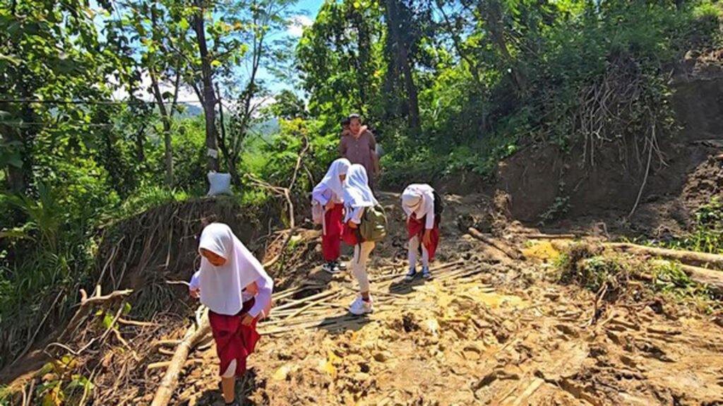 Sebelumnya, kondisi jalan berlumpur dan terdampak longsor membuat aktivitas masyarakat terganggu. Para siswa harus melintasi jembatan bambu darurat, bahkan kerap digendong orang tua karena licin dan berbahaya. Seorang petani setempat, Rahmat (39), mengaku terpaksa memikul gabah seberat 50 kilogram sejauh sekitar satu kilometer karena kendaraan tidak dapat melintas.