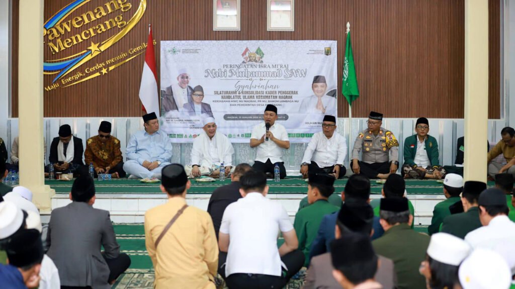 Wakil Bupati Sukabumi H. Andreas menghadiri peringatan Isra Miraj Nabi Muhammad SAW yang dirangkaikan dengan silaturahmi Alumni PD-PKPNU MWC NU Kecamatan Nagrak. Kegiatan tersebut berlangsung di Aula Kantor Desa Pawenang, Kecamatan Nagrak, Minggu (25/01/2026).